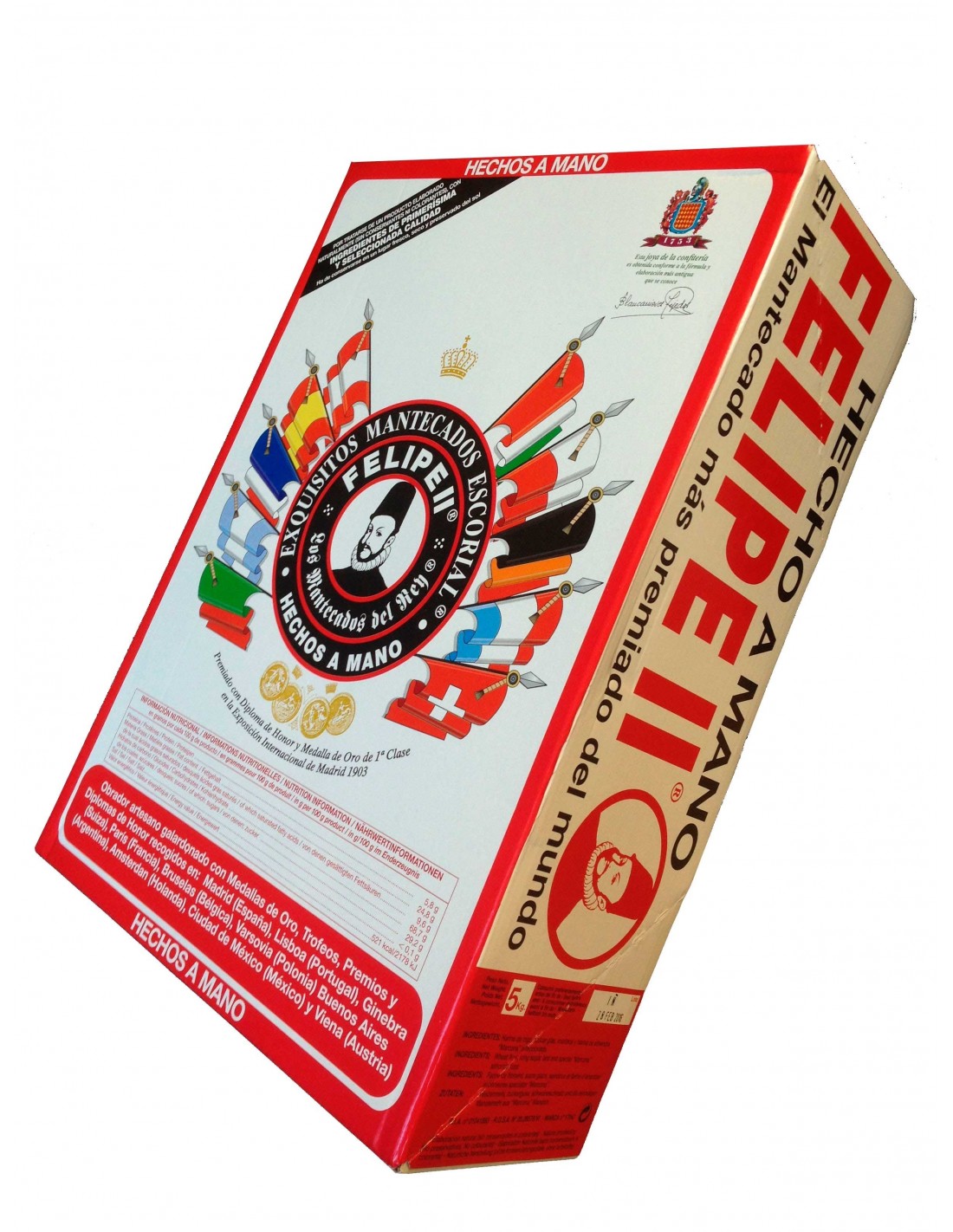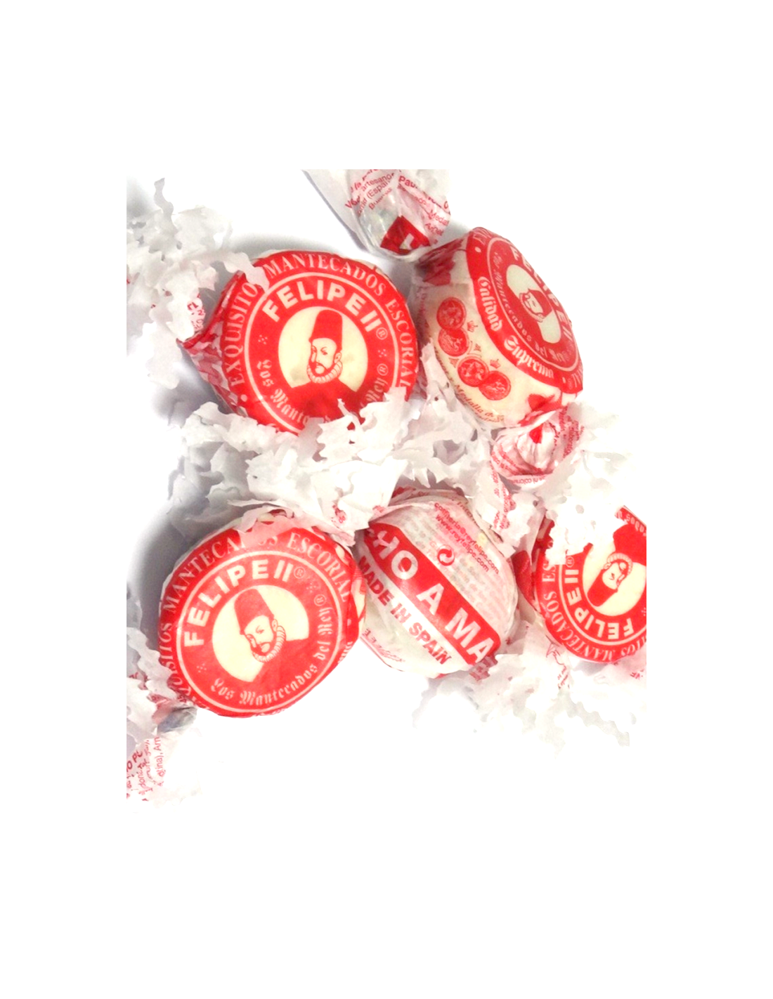 Elaborados a mano con harina de trigo, azúcar, manteca de cerdo y harina de almendra Marcona. Los mantecados Felipe II, guardan celosamente la tradición artesanal que durante siglos ha hecho de ellos un dulce exquisito y selecto, reconocido por los gustos más exigentes. Le invitamos a sentarse en su butaca favorita, desenvolver uno de esos mantecados, pellizcar entre sus dedos un trocito y llevárselo a la boca. Entonces notará en su paladar el suave e inconfundible sabor que hace de nuestro dulce uno de los bocados más exquisitos.